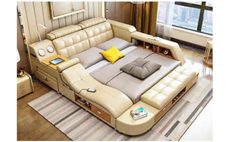 Master Luxury Leather Smart Bed COLOURS: Black & Berge Cream.